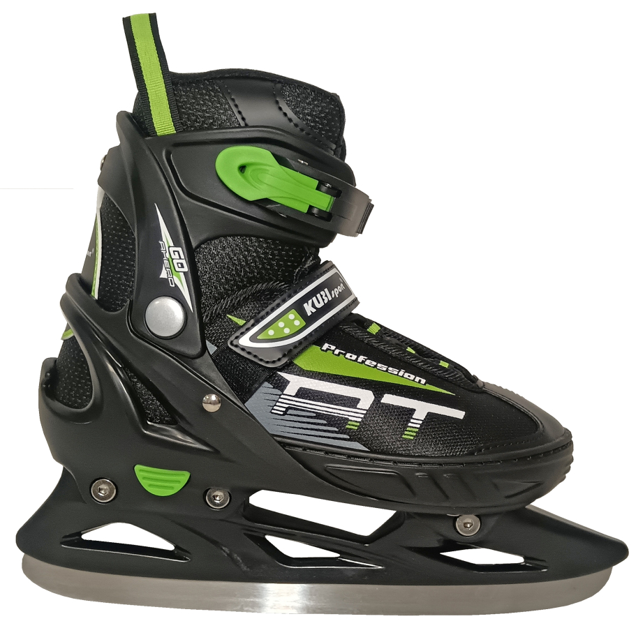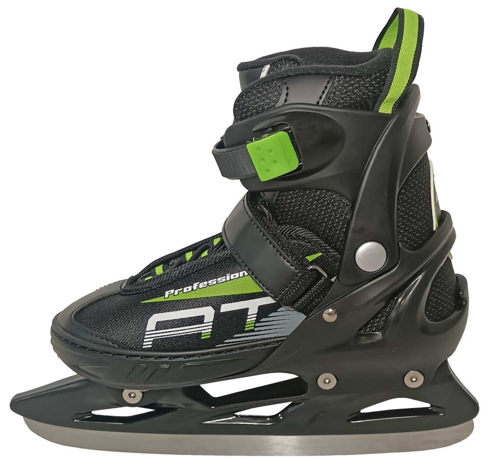 Hockey skates, expandable - 4 sizes in one shoe thanks to a simple mechanism for increasing and decreasing the skeleton of the shoes. Shoe adjustment range for four sizes 28-31 = 18,5 - 19,8 cm. The length of the insole, at the smallest size setting, is 18.5 cm. The skates are made up of a plastic skeleton and an inner textile boot, which has a soft lining to ensure the highest comfort. To achieve a proper fit on the foot, there is a classic lacing, a textile buckle with Velcro and a plastic buckle used to fix the shoe perfectly on the foot. The skates have a water-repellent finish (impregnation) that prevents moisture from penetrating the shoe and also prevents the foot from getting cold. Nevertheless, we recommend that you occasionally impregnate the skates with commonly available impregnating agents. The skates have a hockey knife.