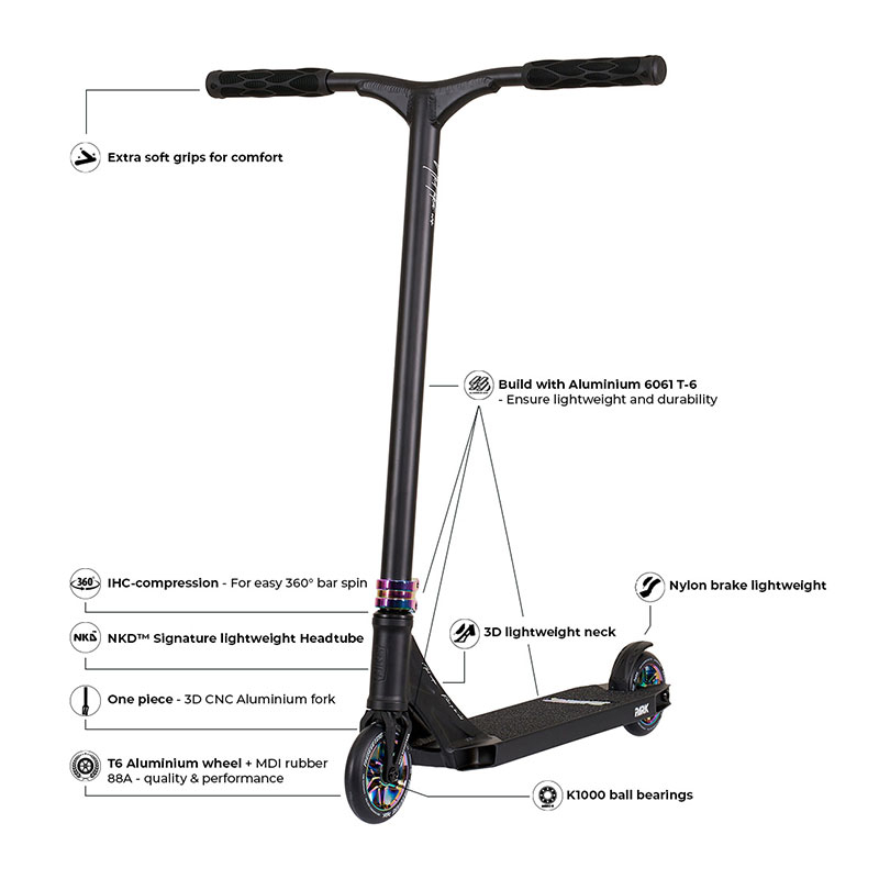 NKD Park triku skrejritenis ir aprīkots ar PRO līmeņa detaļām par visiem pieejamu cenu. Ne tikai labi aprīkots, bet arī īpaši viegls, jo NKD Park skūtera svars ir tikai 3.2kg! Veidots tā, lai būtu neapstrīdama #1 izvēle savā cenas kategorijā.