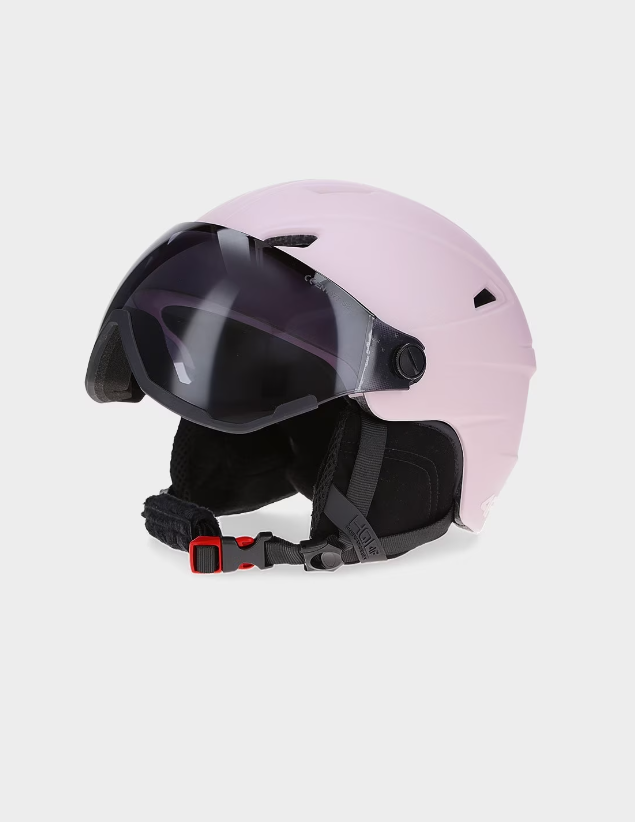Sieviešu slēpošanas ķivere ar integrētām slēpošanas brillēm - pūdersārta