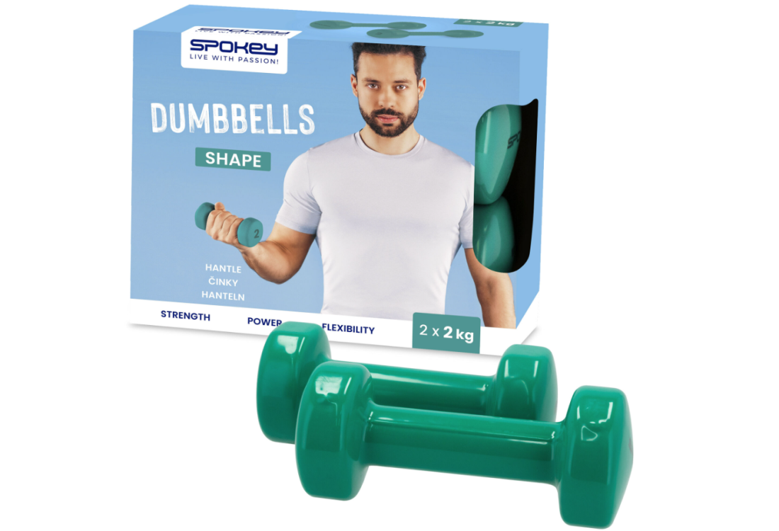 Spokey SHAPE ir komplekts ar divām vinila hantelēm, katra 2 kg smaga. Šīs hanteles ir lieliski piemērotas treniņiem mājās, palīdzot attīstīt roku un plecu muskuļus, kā arī uzlabot vispārējo spēku un tonusu.